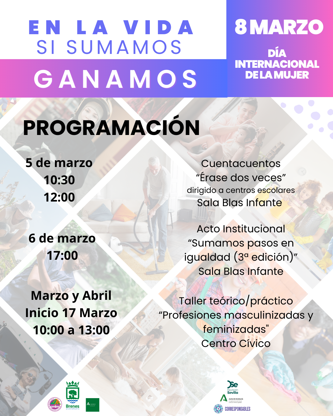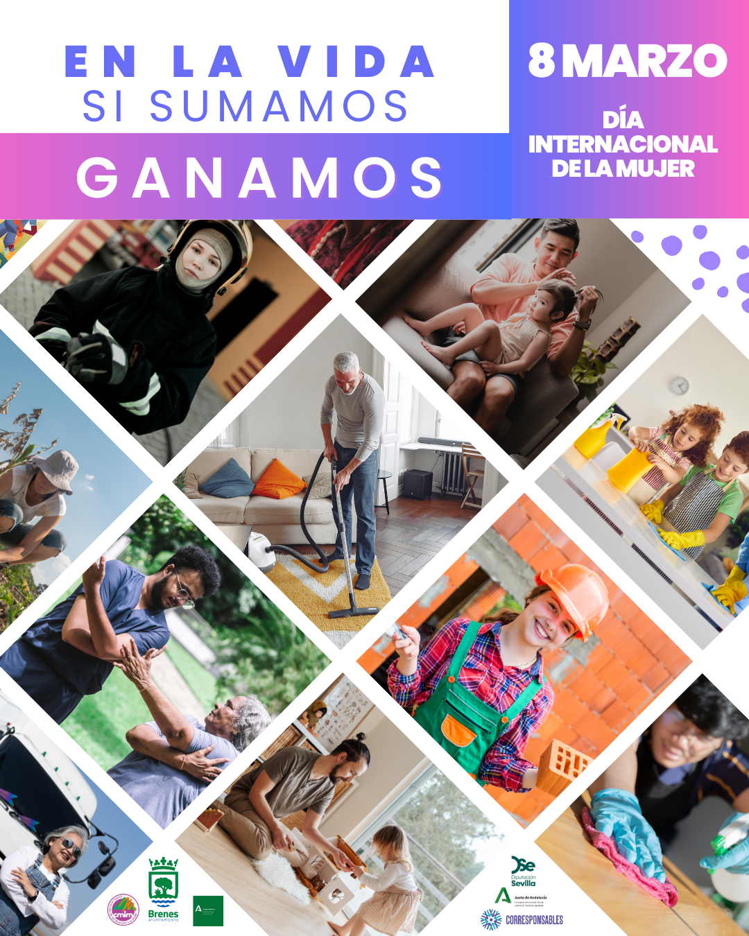 Bajo el lema «En la vida, si sumamos, ganamos», este año ponemos el foco en la corresponsabilidad y en la igualdad en el ámbito laboral, rompiendo los estereotipos de las profesiones masculinizadas y feminizadas. Porque cuando compartimos responsabilidades en casa y cuando abrimos oportunidades en el trabajo sin etiquetas, avanzamos como sociedad.