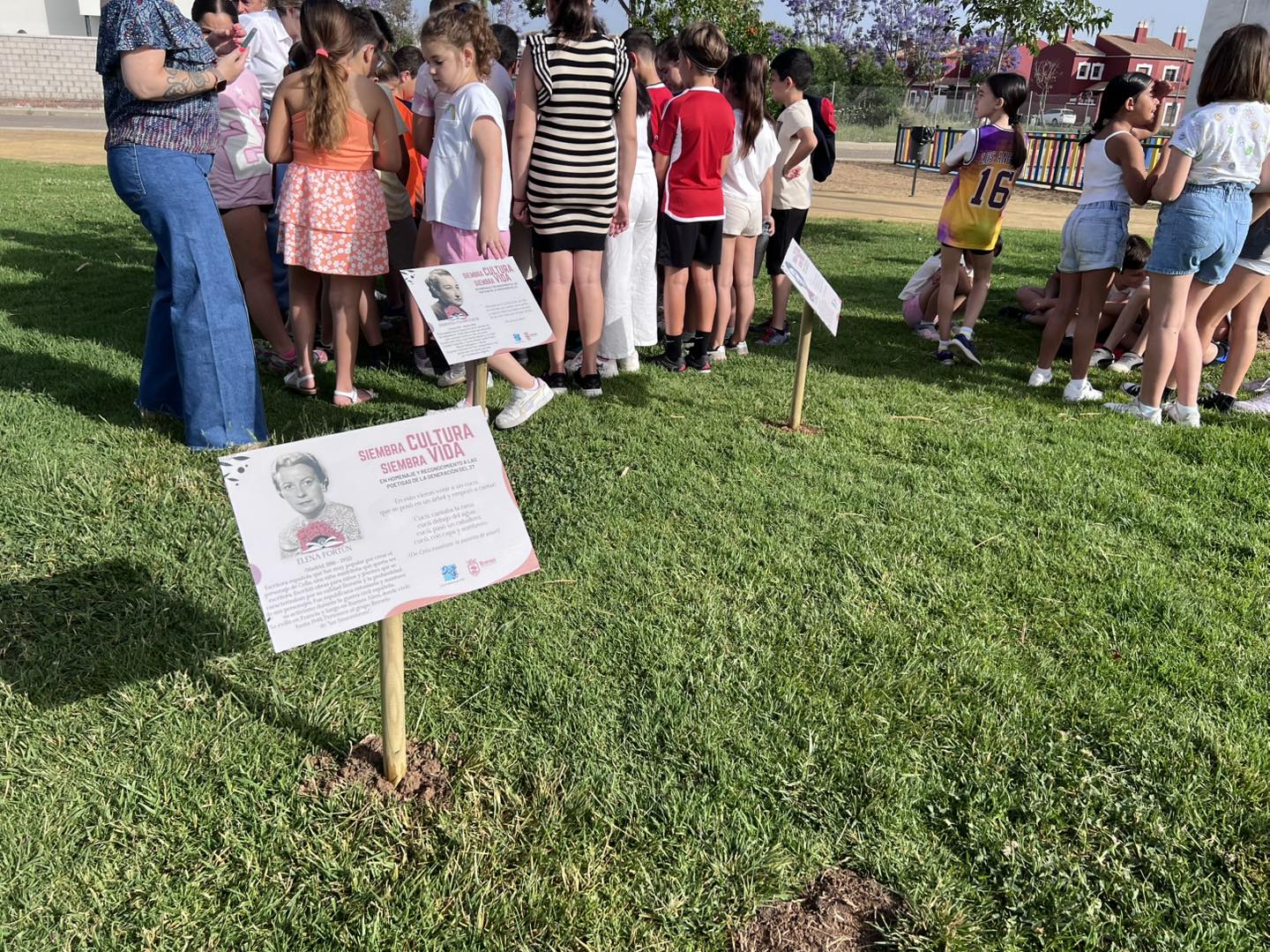 Esta iniciativa, bajo el lema “Siembra Cultura, Siembra Vida”, ha ido más allá del gesto medioambiental. Cada árbol plantado es acompañado por una placa conmemorativa dedicada a una de las poetisas de la Generación del 27, conocidas como “Las Sinsombrero”, mujeres silenciadas por la historia pero fundamentales en la vida cultural y literaria de nuestro país. Una actividad enmarcada dentro de las acciones que se irán desarrollando con motivo del centenario de este grupo de poetas en 2027, y que forma parte también de la propuesta del Ayuntamiento para incidir en el alumnado de Primaria promoviendo valores culturales e igualitarios.