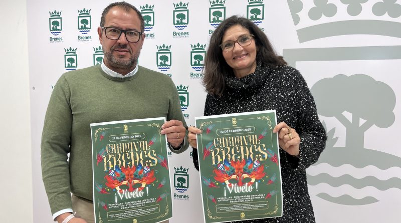 El Alcalde de Brenes, Jorge Barrera García , y la delegada de Participación Ciudadana, Encarni Barea Sánchez, han presentado el cartel y las bases del concurso de disfraces y artefactos con el que una edición más se pretende fomentar la participación y la que es una cita asentada ya el municipio.
